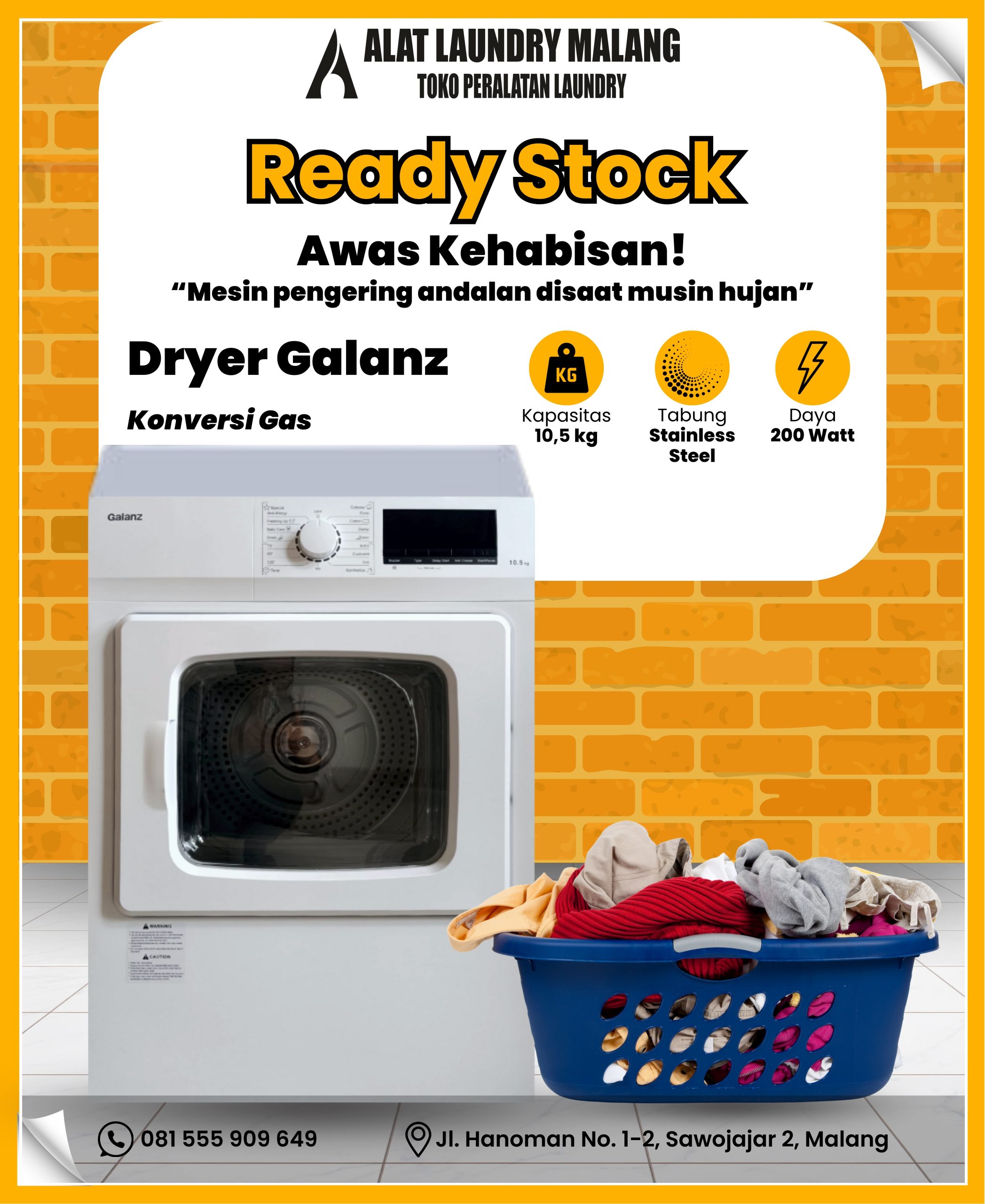 Dengan menggunakan Mesin Pengering Anda tidak perlu khawatir lagi dengan cuaca hujan. Di toko kami menjual berbagai merk dan kapasitas mesin pengering yang siap membantu pekerjaan rumah maupun usaha laundry Anda.