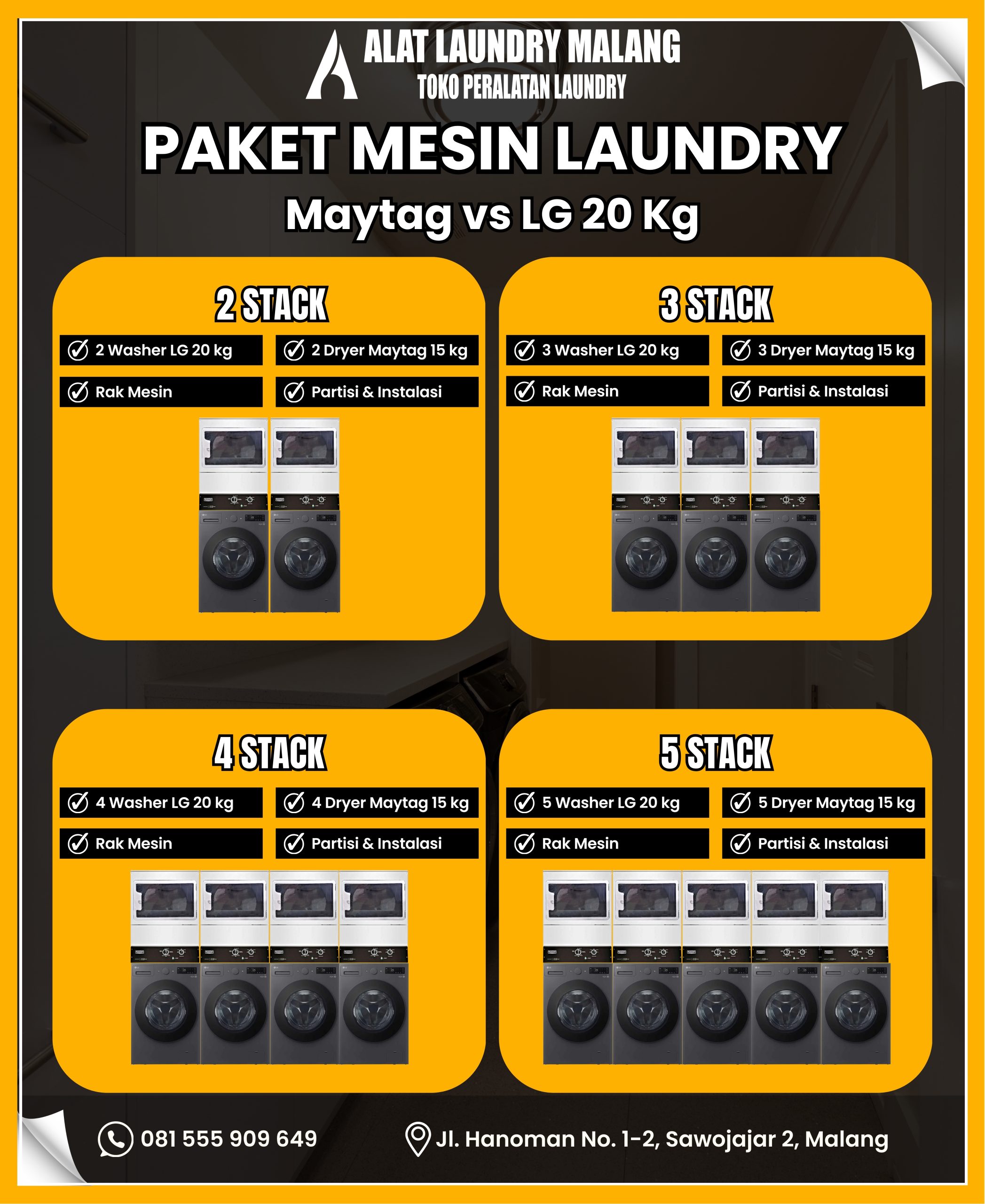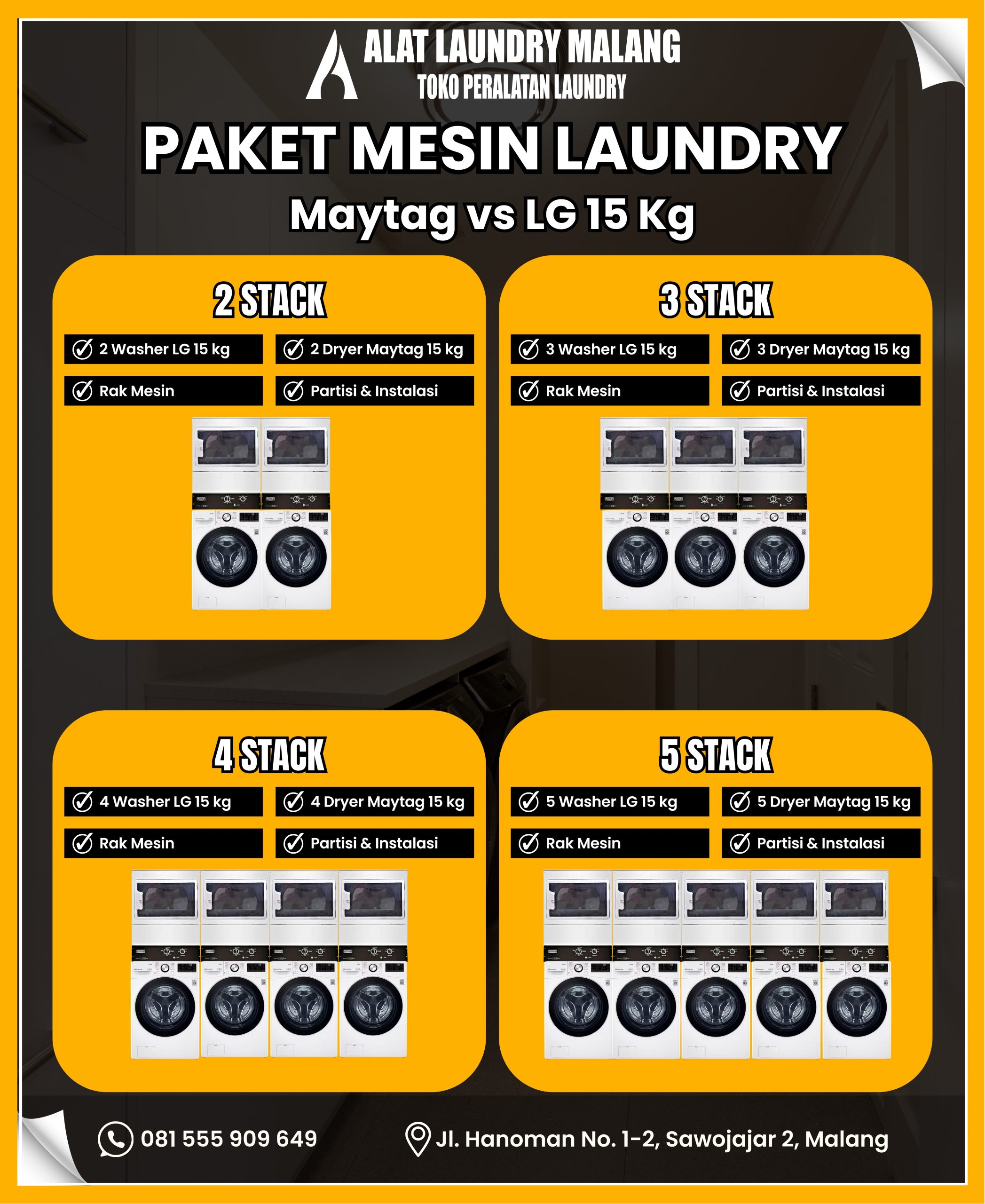 Di toko Alat Laundry Malang tidak hanya menyediakan perunit mesin saja.